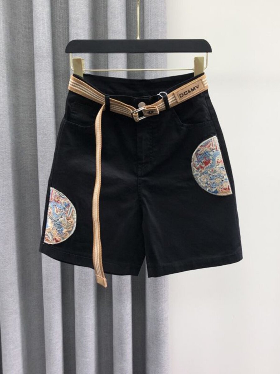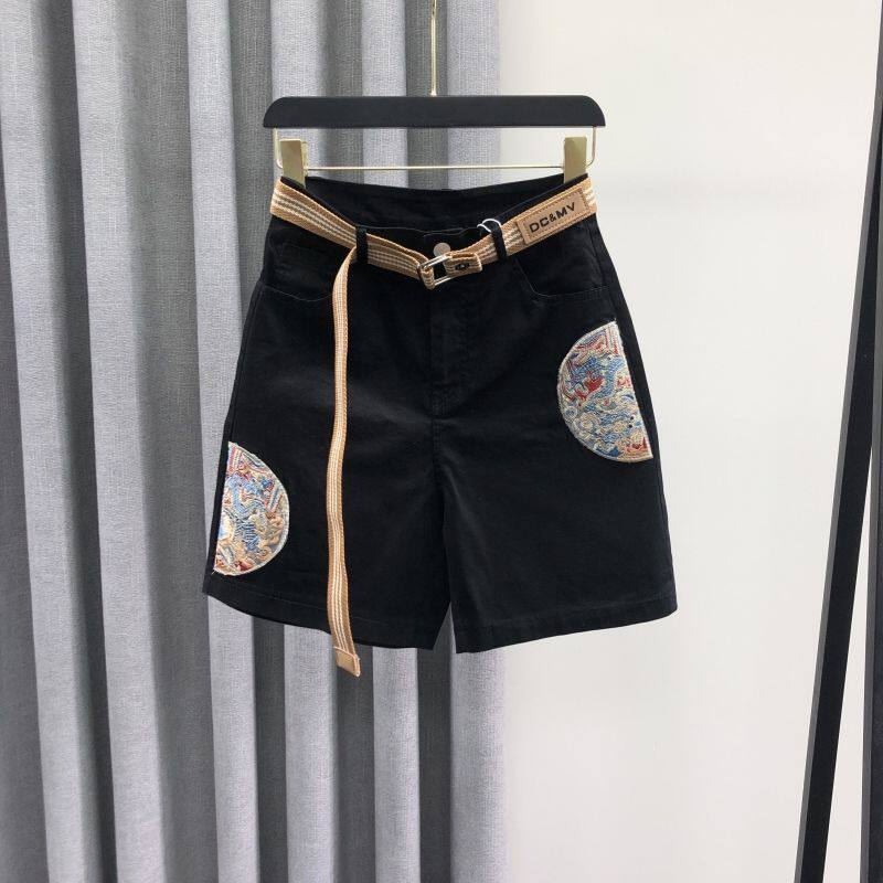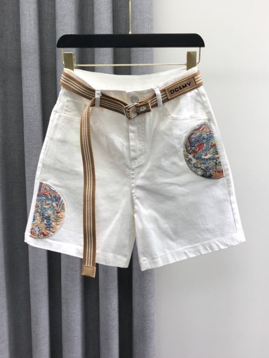 宽松洋气刺绣牛仔短裤 新中式 时尚 女2024年夏季 国风白色休闲五分裤