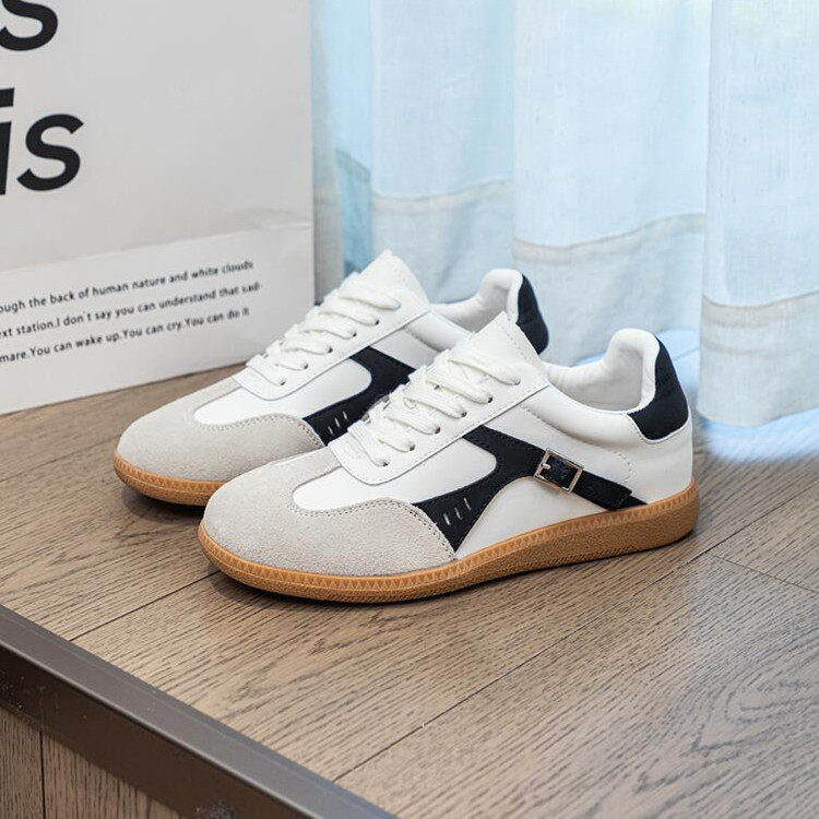 子平底女运动板鞋 有你 真皮小白鞋 德训鞋 时光里王灵均周依然同款