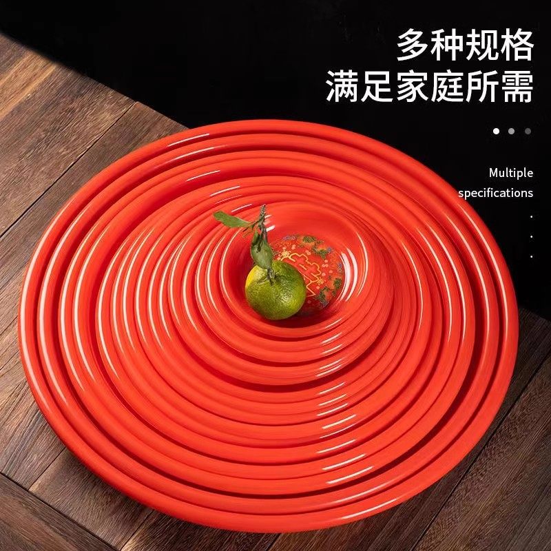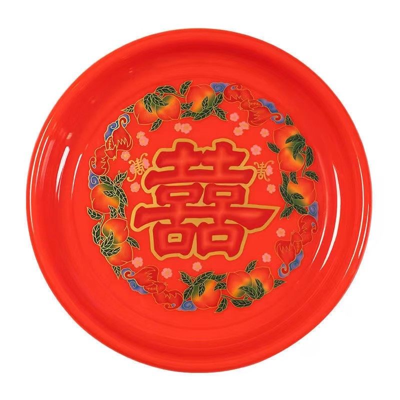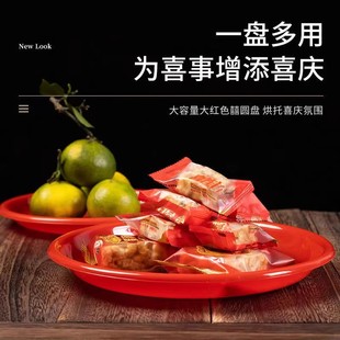 喜盘结婚红色果盘家用拜神供奉盘圆形加厚供佛用品水果塑料糖果