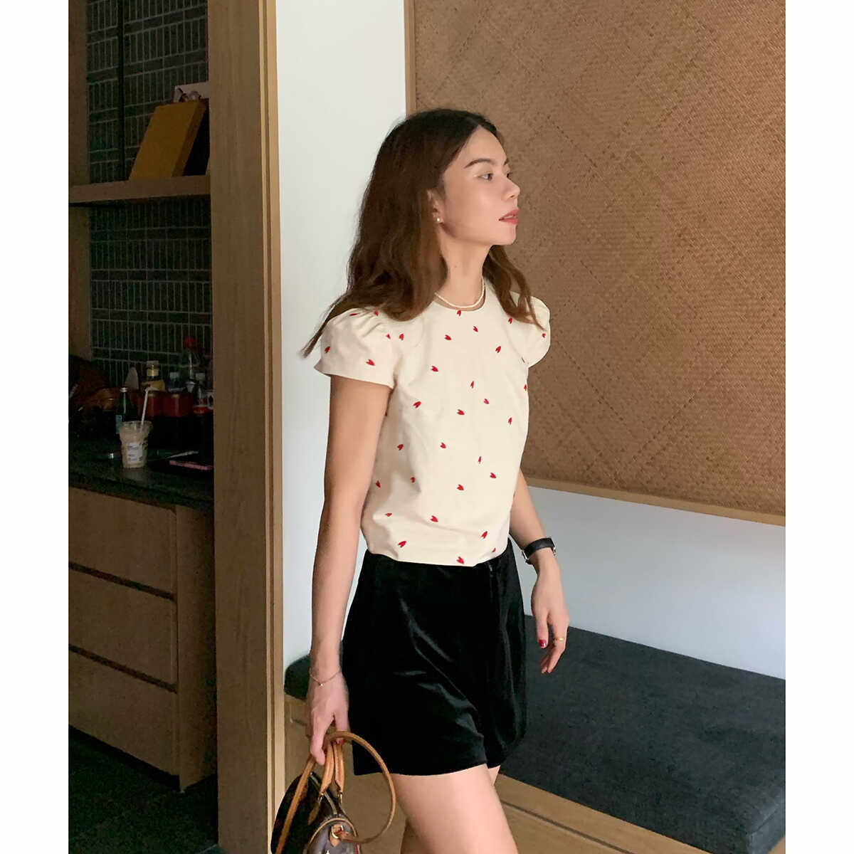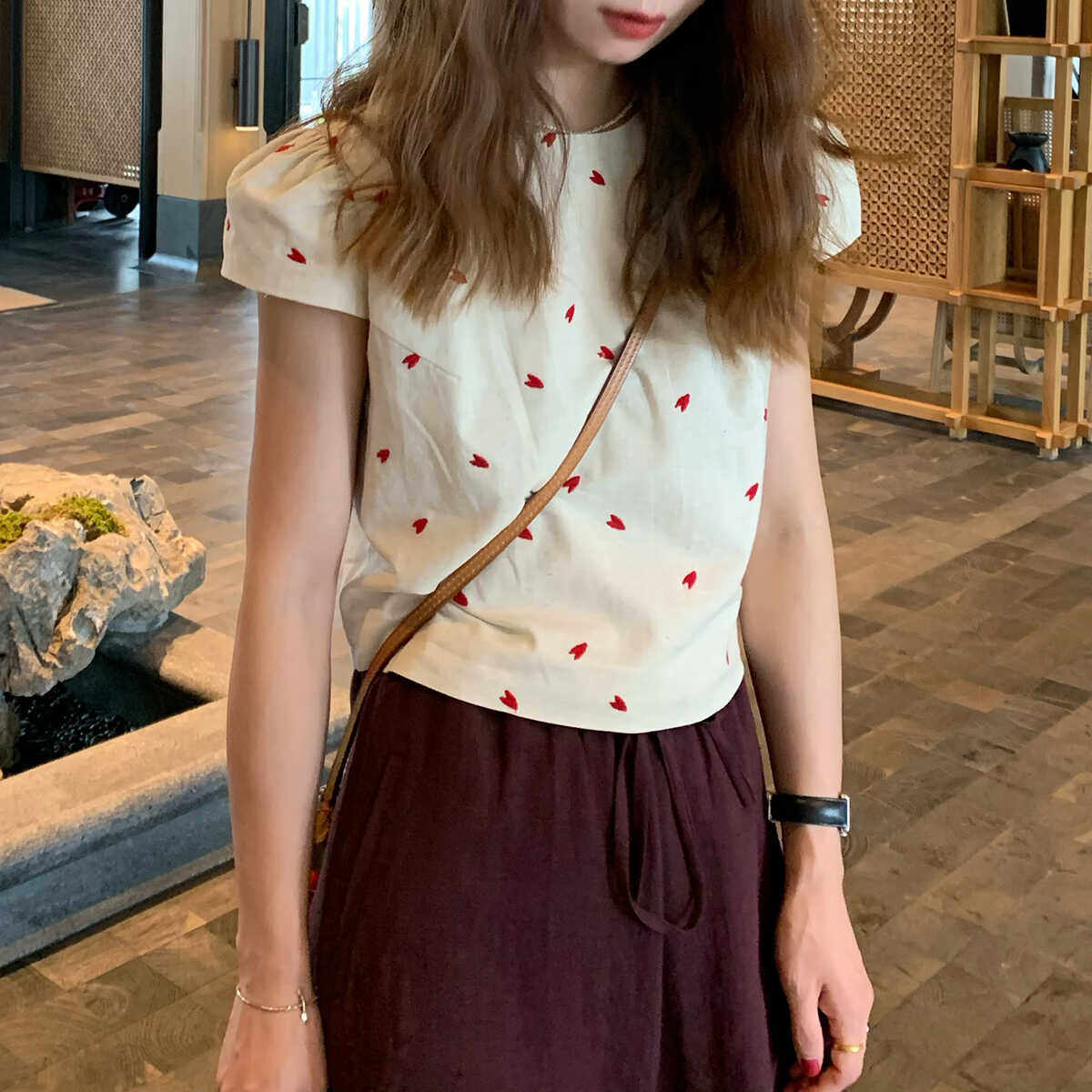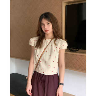 衬衫 大吹女DCN精工刺绣定纺亚麻立体剪裁法式 麻质感显瘦精巧小衫