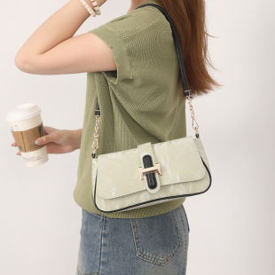 韩系甜美泡泡纱蝴蝶结腋下包包女高级感黑粉撞色单肩斜挎包通勤包