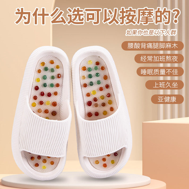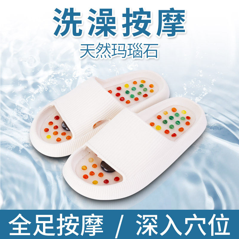情侣卫生间防滑 脚底按摩天然玛瑙石夏季 按摩凉鞋 居家男女浴室拖鞋