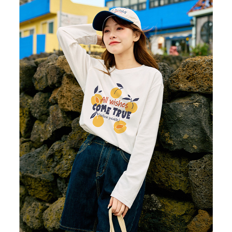 T恤水果圈休闲百搭时尚 女长袖 日常打底上衣G 新款 唐狮2025夏季