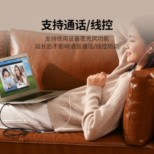 绿联3.5mm耳机延长线音频aux公对母转接加长电脑连接音响有线带麦