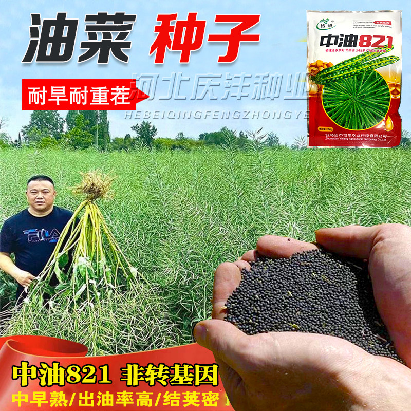 油菜种子中油821实心矮杆油菜种子荚密油高油菜籽榨油浓香纯黑籽