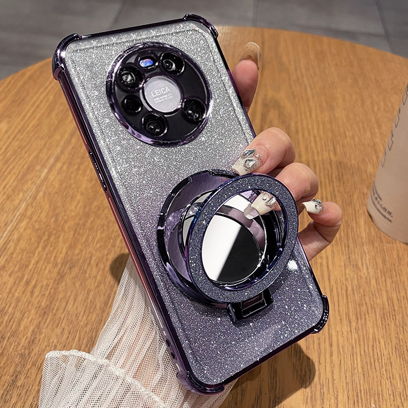 适用华为mate40手机壳meta40pro保护mt40por硅胶套m40带镜头膜全包防摔p透明软壳女5G新款 405g支架镜子高级感