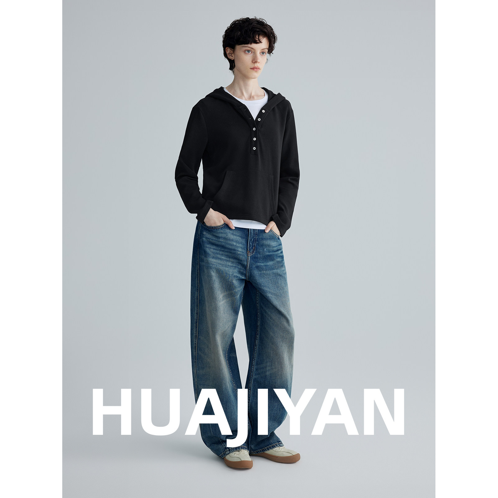 洋气显瘦百搭连帽极简宽松卫衣女秋冬新款 华吉言 五子棋