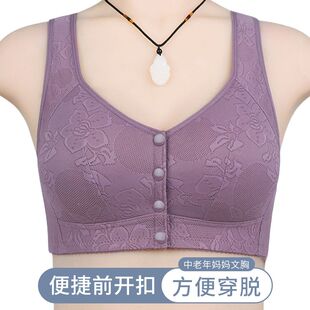 中老年人妈妈内衣大码 妇女老人胸罩纯棉格子 前扣文胸无钢圈背心式