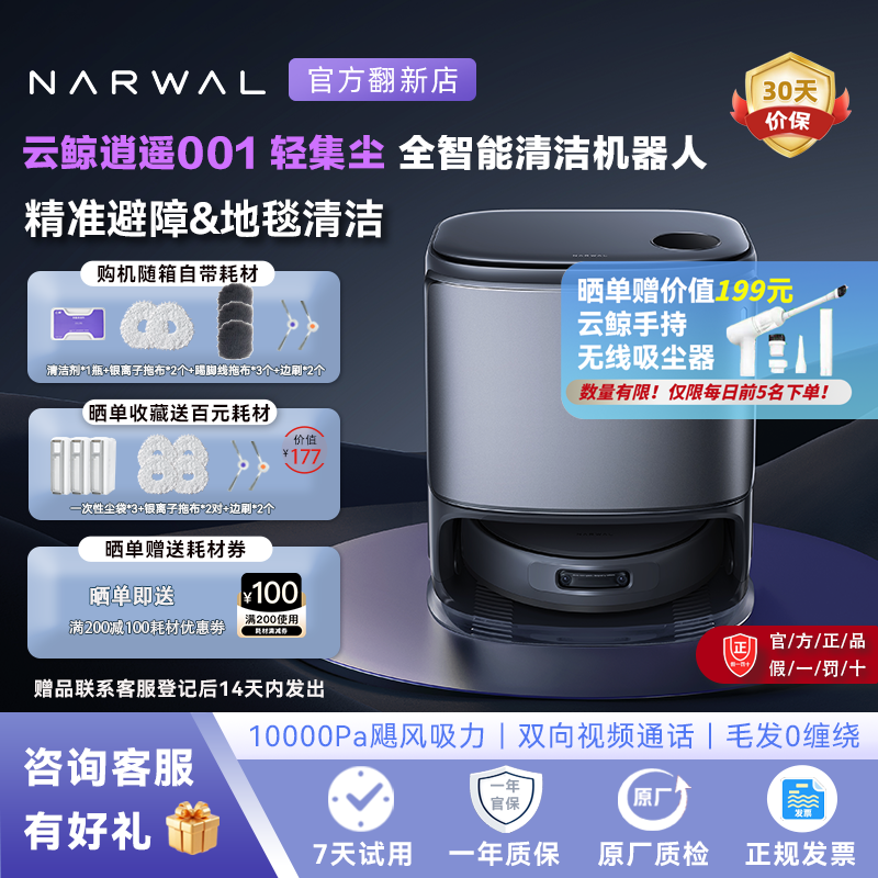 云鲸J4智能全自动扫拖一体扫地机器人不缠毛发水箱版 官翻正品