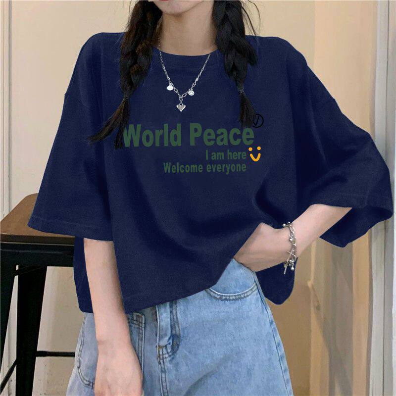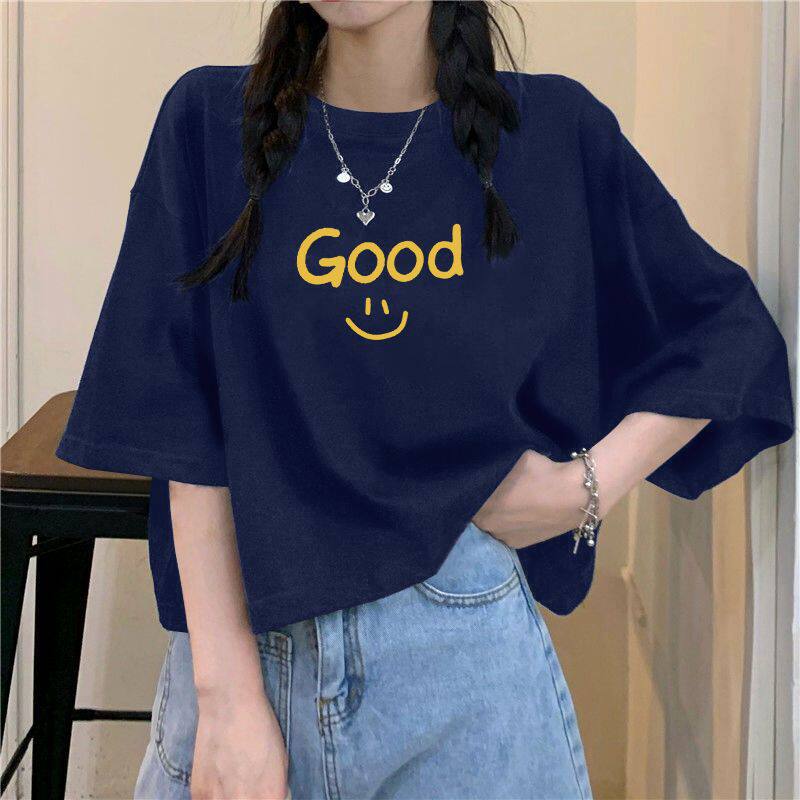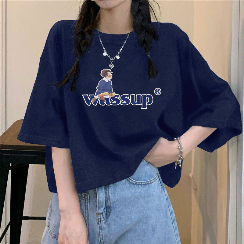 宽松设计感小众独特别致半袖 T恤女夏季 藏青色上衣 ins纯棉短袖 新款