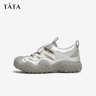新款 Tata他她休闲银色运动鞋 2025秋季 户外厚底登山鞋 CCR01CM4 女鞋