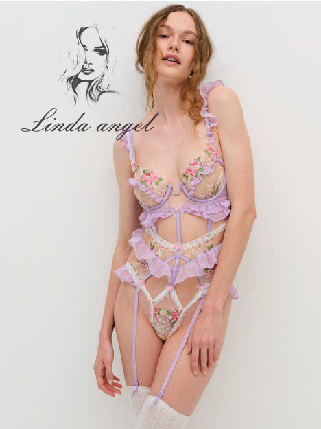 forloveandlemons爱与柠檬少女连体衣性感蕾丝镂空刺绣内衣吊袜带