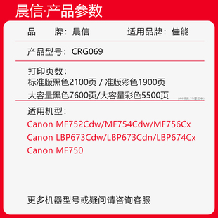 显墨量 LBP674Cx 适用佳能MF752Cdw硒鼓MF754Cdw Cdw CRG069粉盒MF750碳粉 MF756Cx打印机墨盒LBP673Cdn
