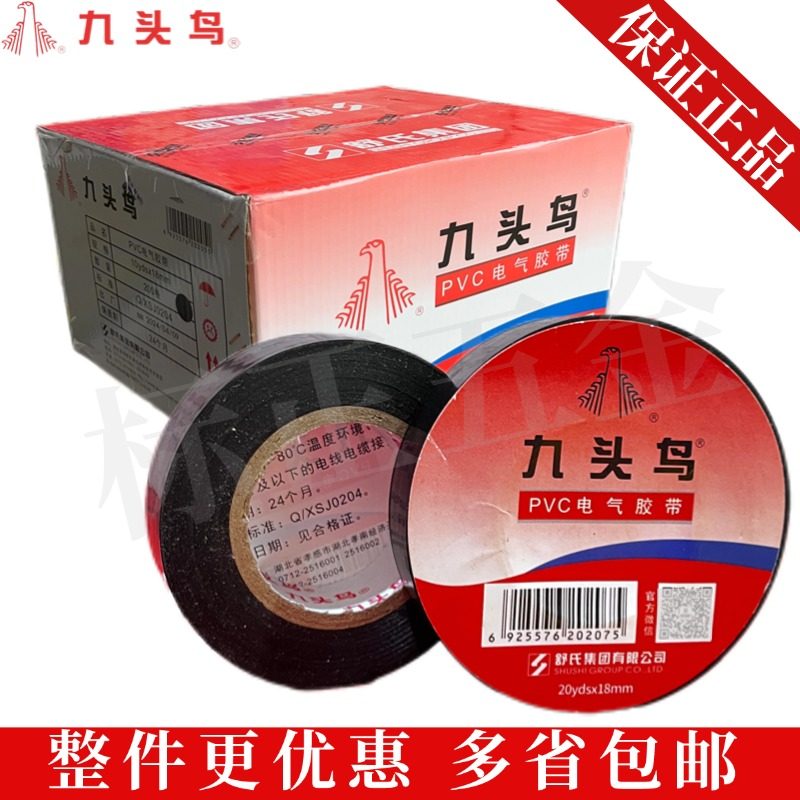 九头鸟绝缘胶带防水强粘黑色电气电线耐高温高压PVC专用电工胶布