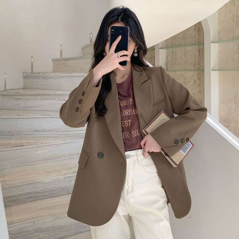 小个子2024春秋高级咖色西服上衣休闲 外套女设计独特新款 个性 西装