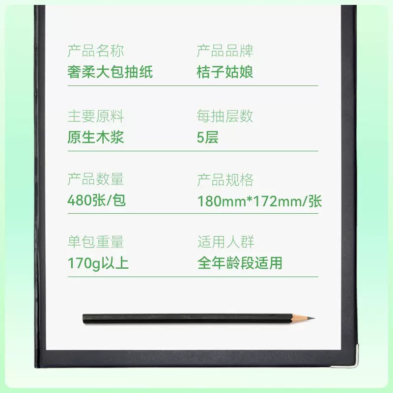 桔子姑娘L码 面巾纸母婴用纸 抽纸加厚餐巾纸480张10包家用抽取式
