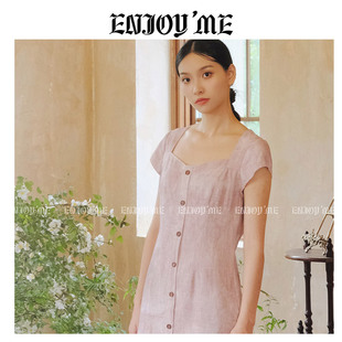 新款 ENJOYME商场同款 连衣裙女夏季 方领短袖 小个子精致a字短裙 韩版