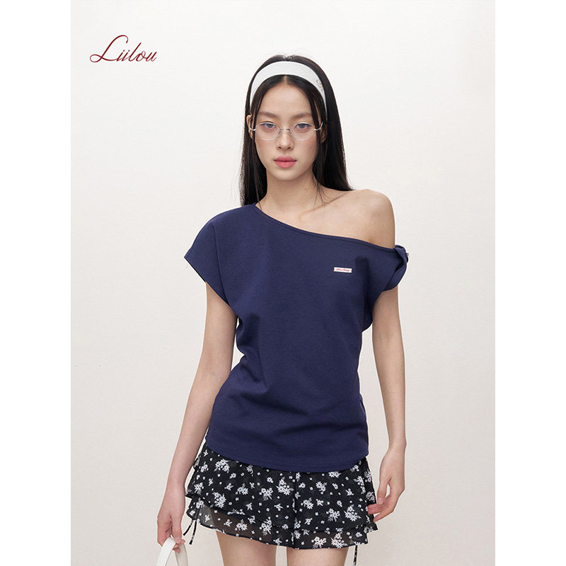 扭结斜肩短袖 卢昱晓任敏同款 fit clean T恤 Liilou