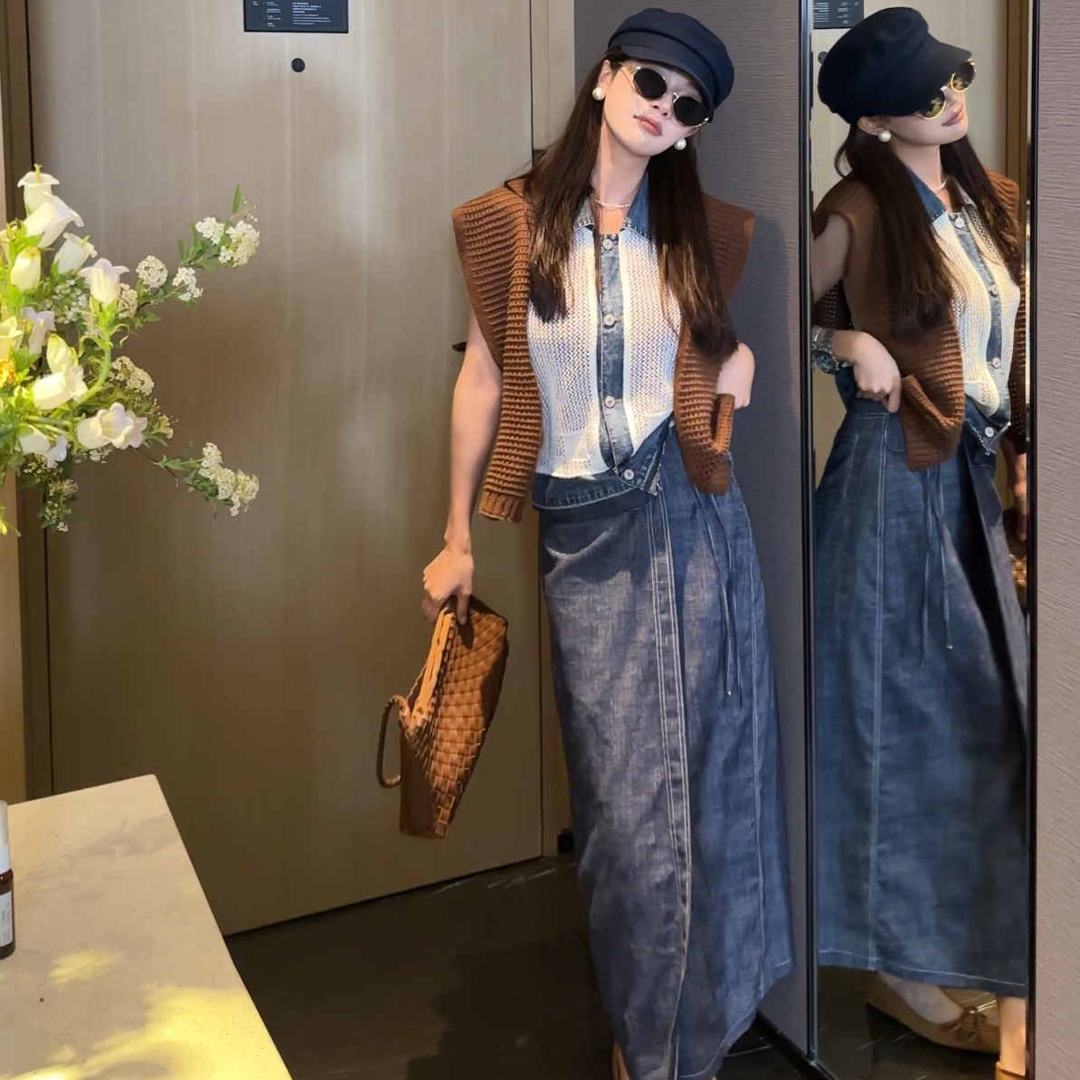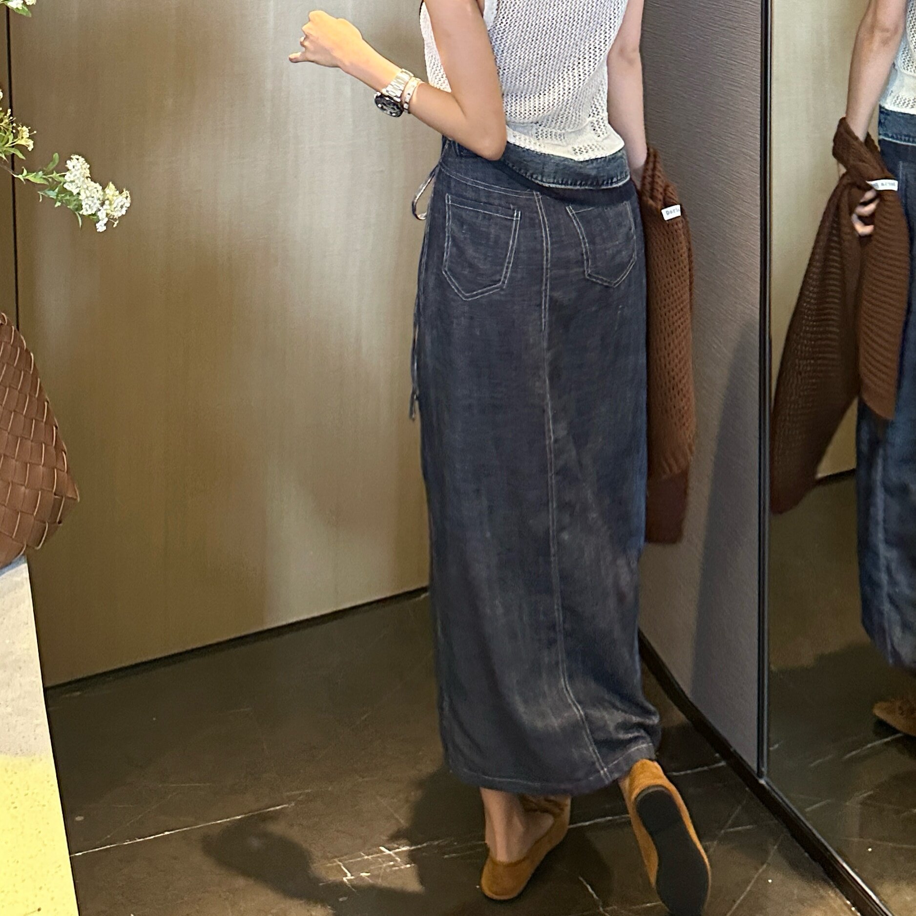 包臀裙SM2170 半身裙夏长款 利达NEWDADAD复古牛仔亚麻一片式 围裹式