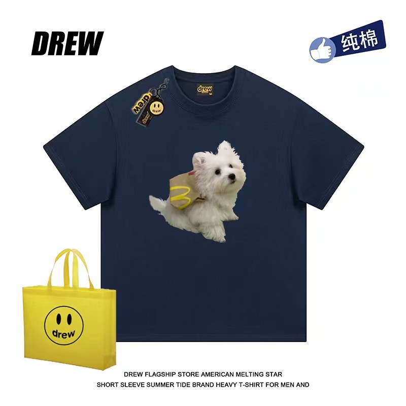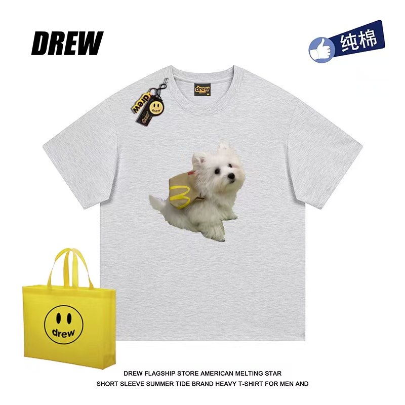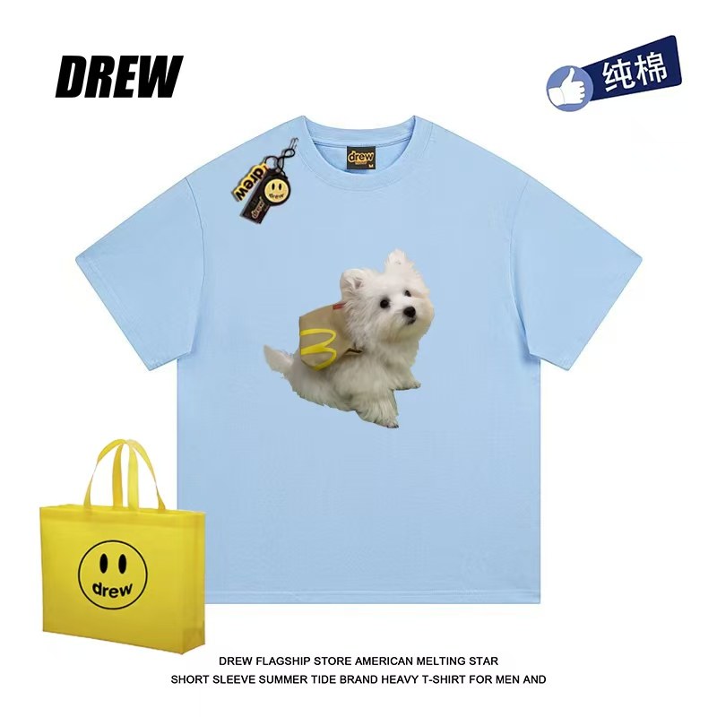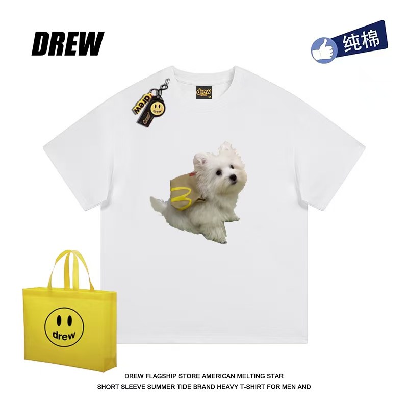 drew美式 T恤百搭男女情侣ins 卡通西高地狗狗可爱印花休闲简约短袖