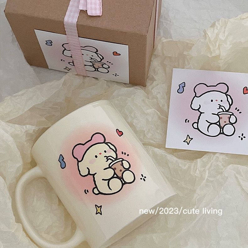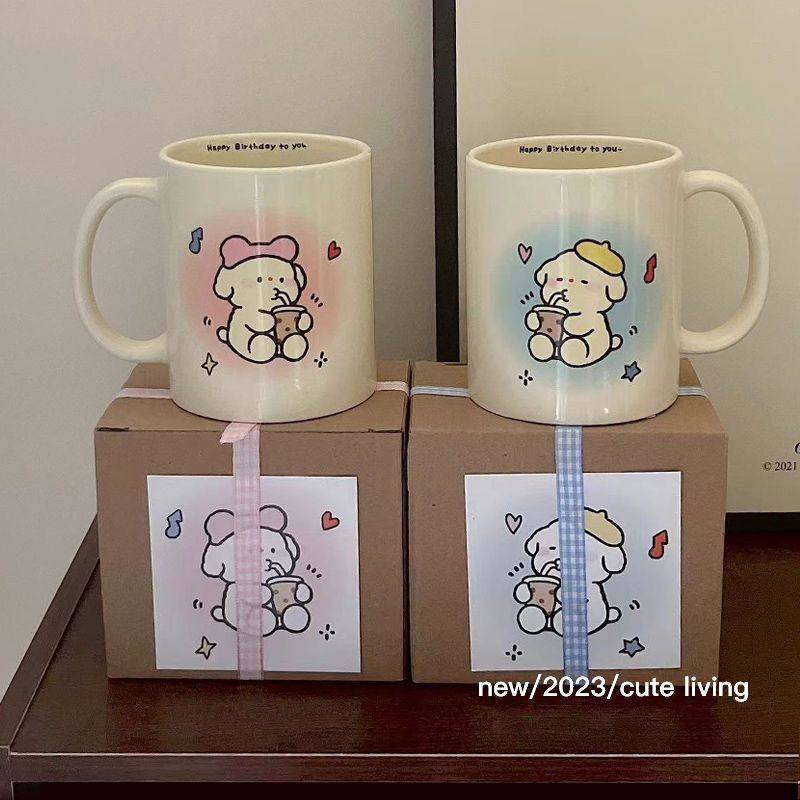 小狗闺蜜喝奶马克杯情侣水杯陶瓷可爱生日毕业礼物咖啡学生茶杯