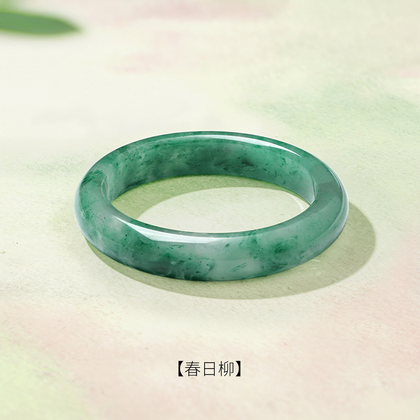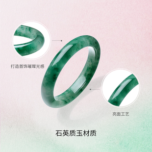 周六福天然正品 飘花非洲翠玉手镯子女平安镯送长辈送女友节日礼物