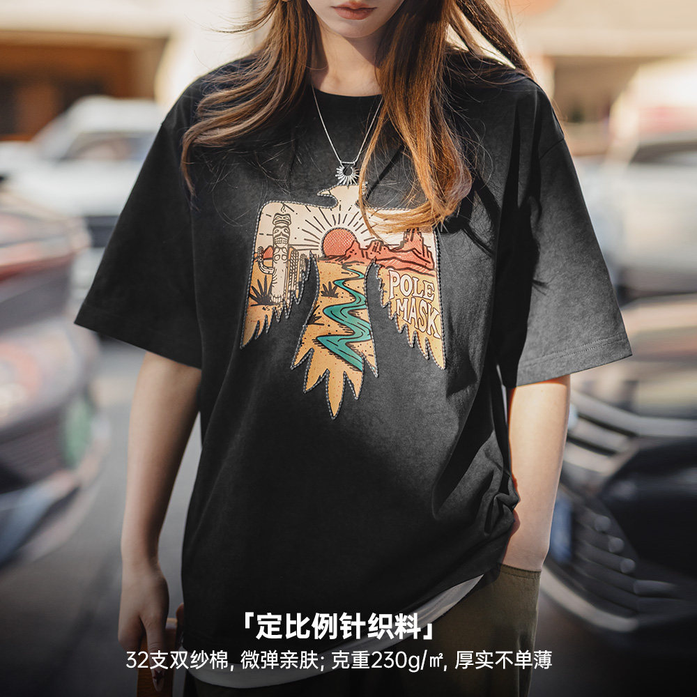 马登夏日复古纳瓦霍民族风印花T恤情侣款 女 黑色宽松休闲百搭短袖