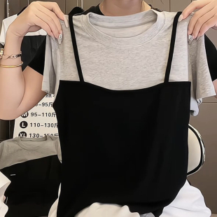 白色V领小吊带打底背心女内搭春夏新款 胖mm遮肚宽松上衣外穿 大码