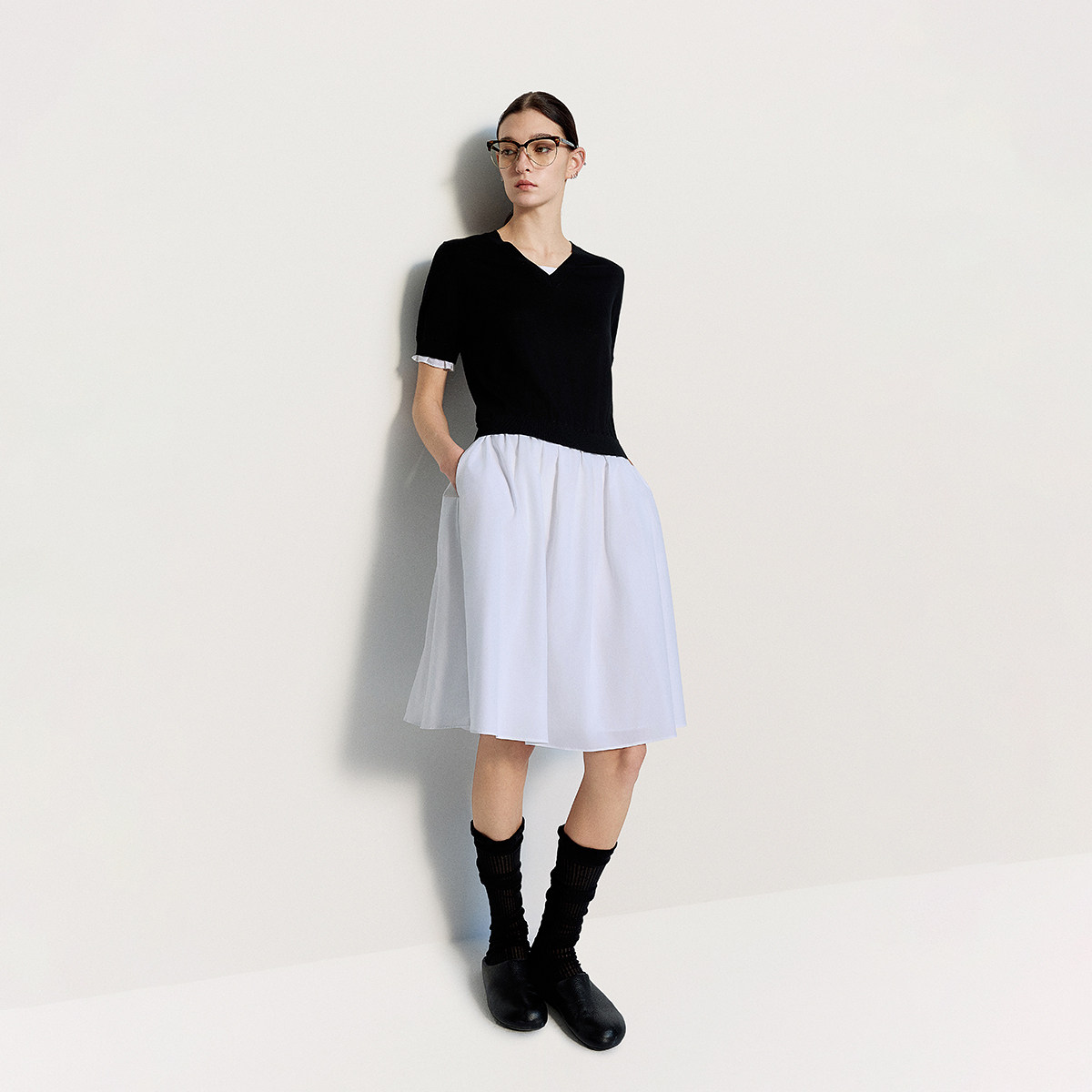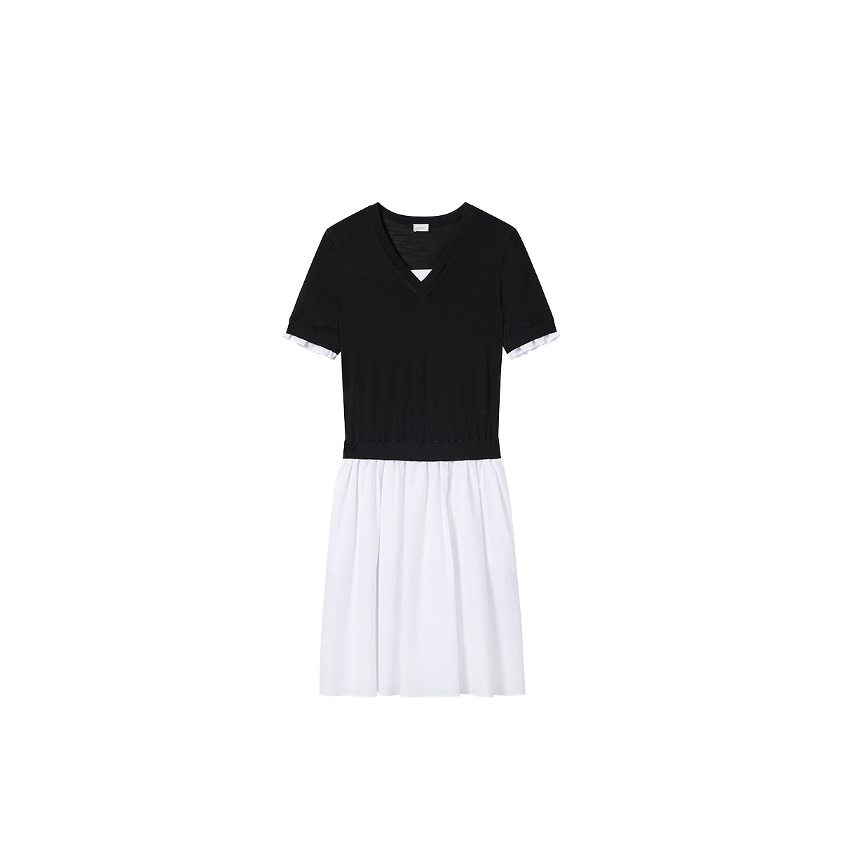连衣裙裙子伞裙撞色拼接夏季 OCHIRLY欧时力 V领假两件短袖