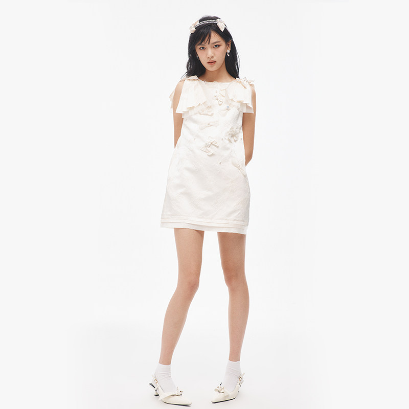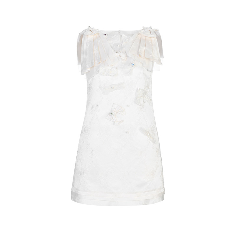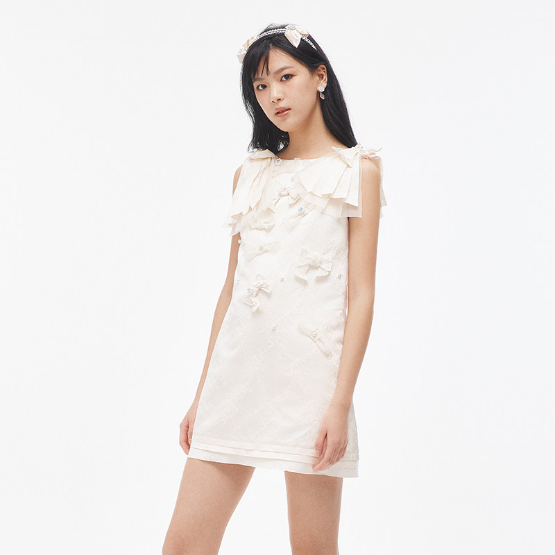 lefame拉飞姆时尚 柳莎朗同款 蝴蝶结提花连衣裙短款 IZNA