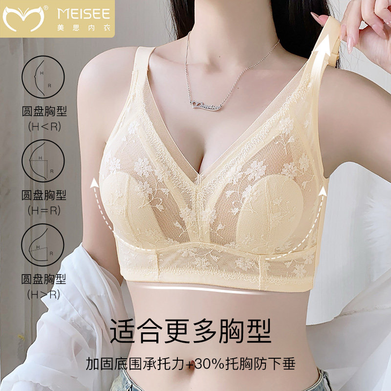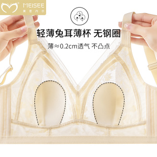 美思兔耳朵大胸显小内衣女夏季 无钢圈收副乳防下垂全罩杯文胸 薄款