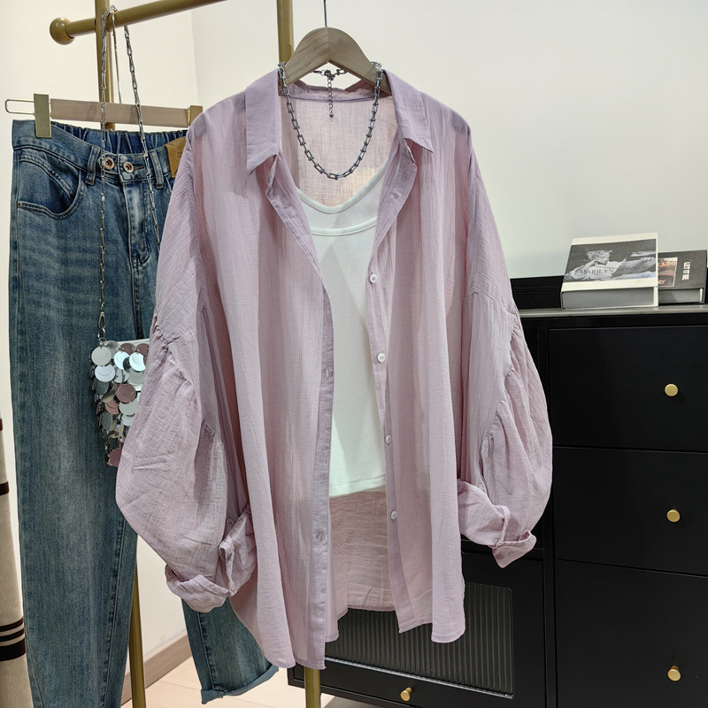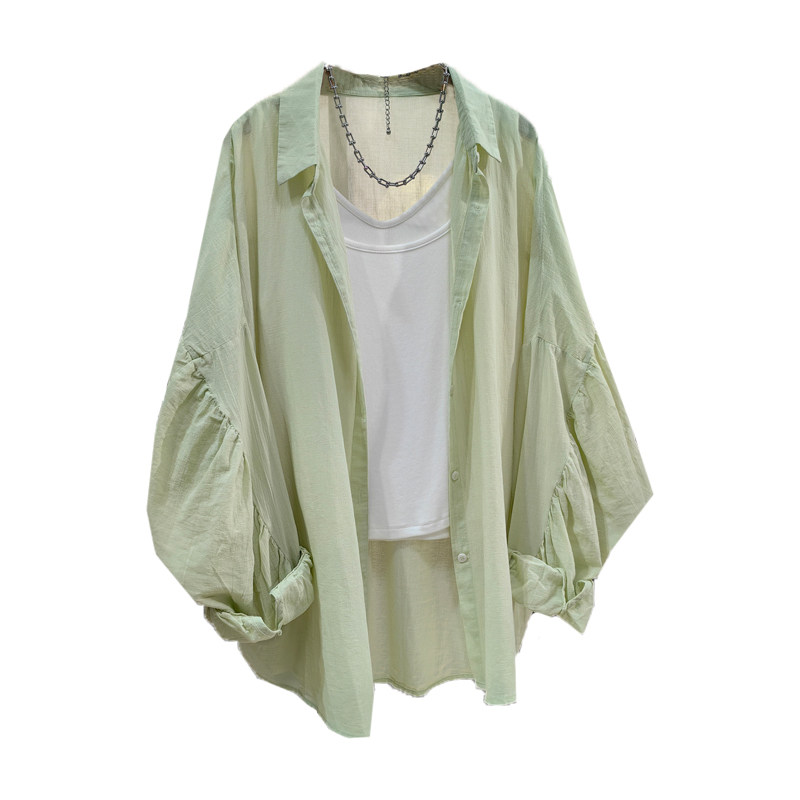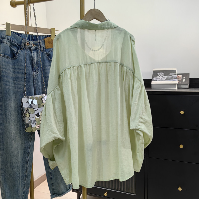 大版 新款 纯棉衬衫 夏季 慵懒风防晒衬衣宽松外套 女长袖 设计感蝙蝠袖