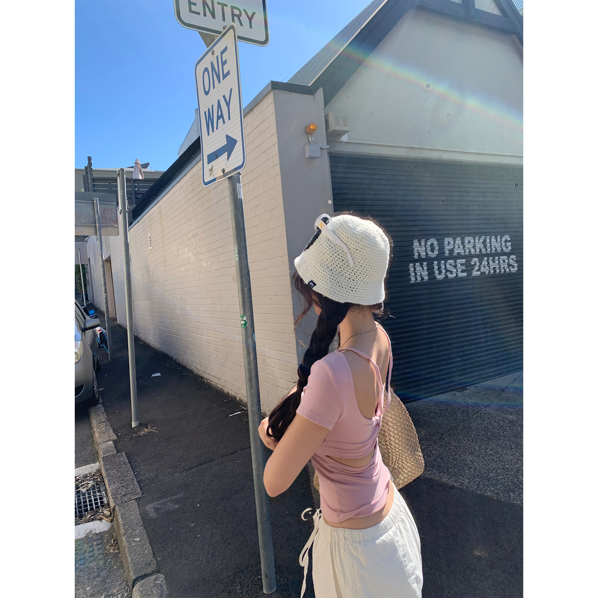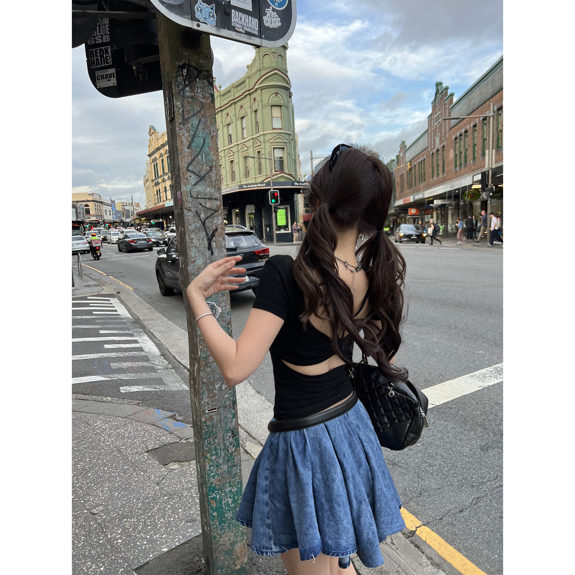 可拆卸胸垫露背辣妹多色短袖 超模外扩 T恤女春夏 Lin Xinlei