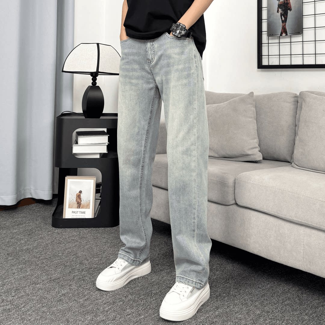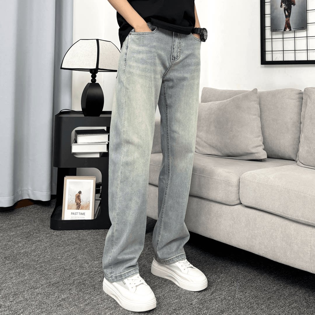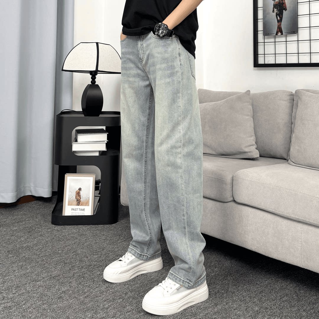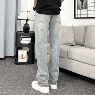 新款 男士 宽松直筒美式 牛仔裤 休闲百搭 高街弹力浅色美式 2025夏季