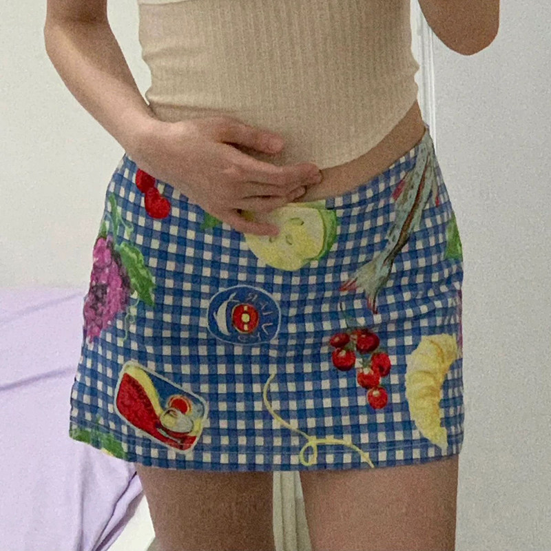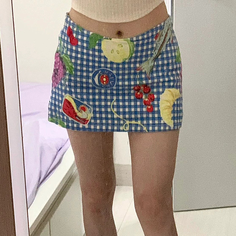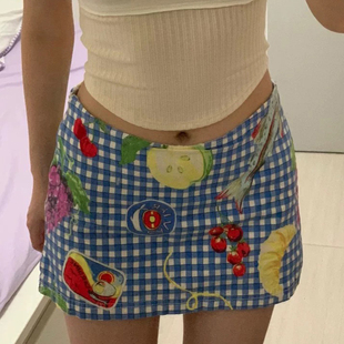 WEEKEEP 显瘦短裙 小众辣妹特色水果花卉格纹印花半身裙低腰修身
