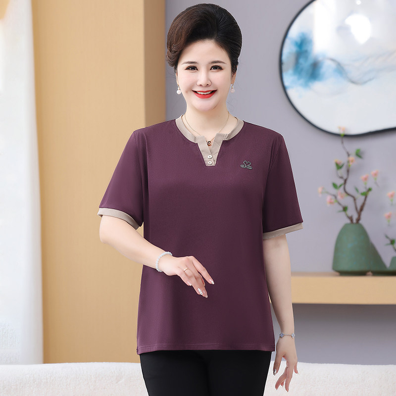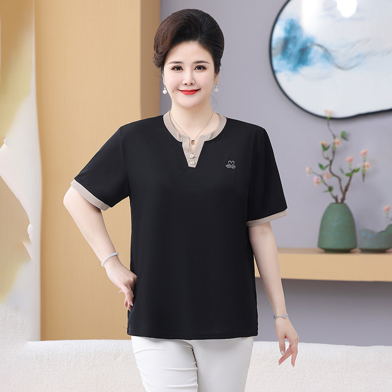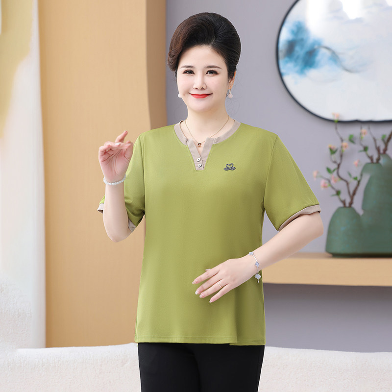 加肥加大码 夏装 2026新款 t恤女士中年妈妈装 遮肚子中老年上衣 短袖