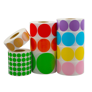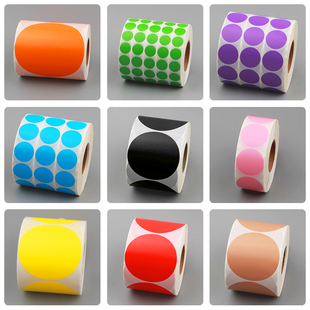 100 打印机铜板贴纸 25不干胶标签纸红蓝绿粉紫橘黄白黑色牛皮色条码 彩色圆形铜版 纸50