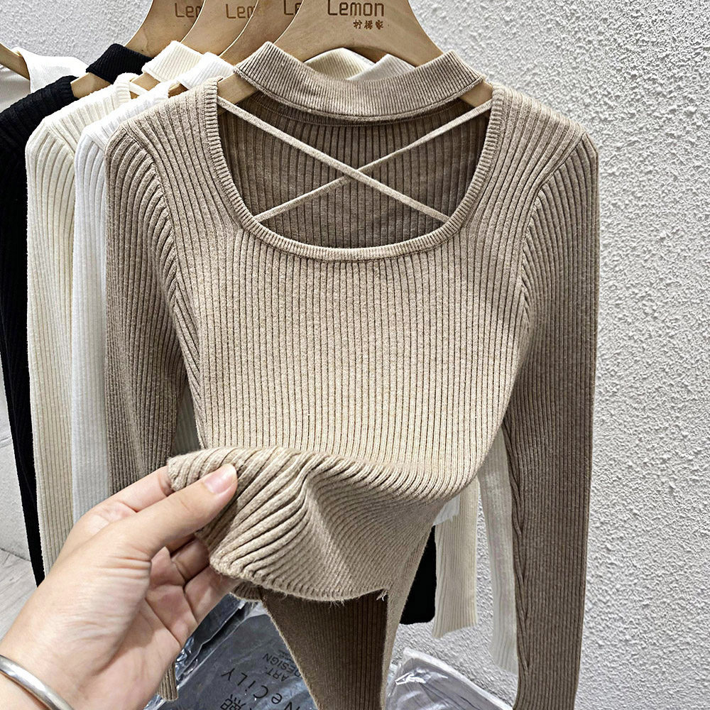 针织打底衫 品牌高级感羊毛衫 女半高领宽松毛衣秋冬加厚羊绒长袖