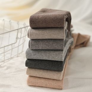 不加绒奶肤连裤 螺纹灰色显瘦踩脚裤 袜 女秋季 日系白色竖条纹打底裤