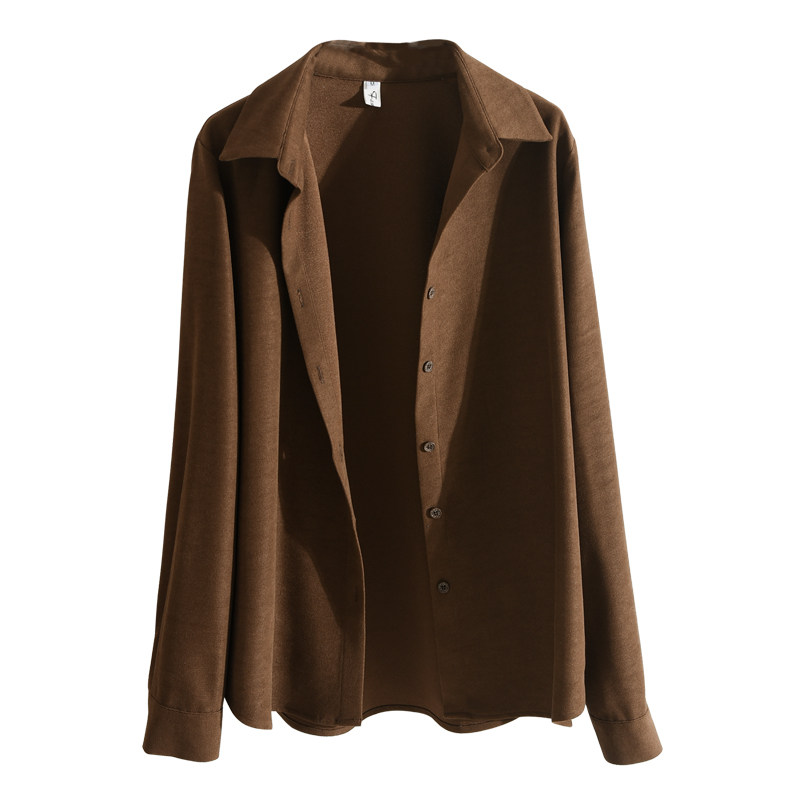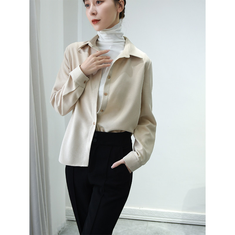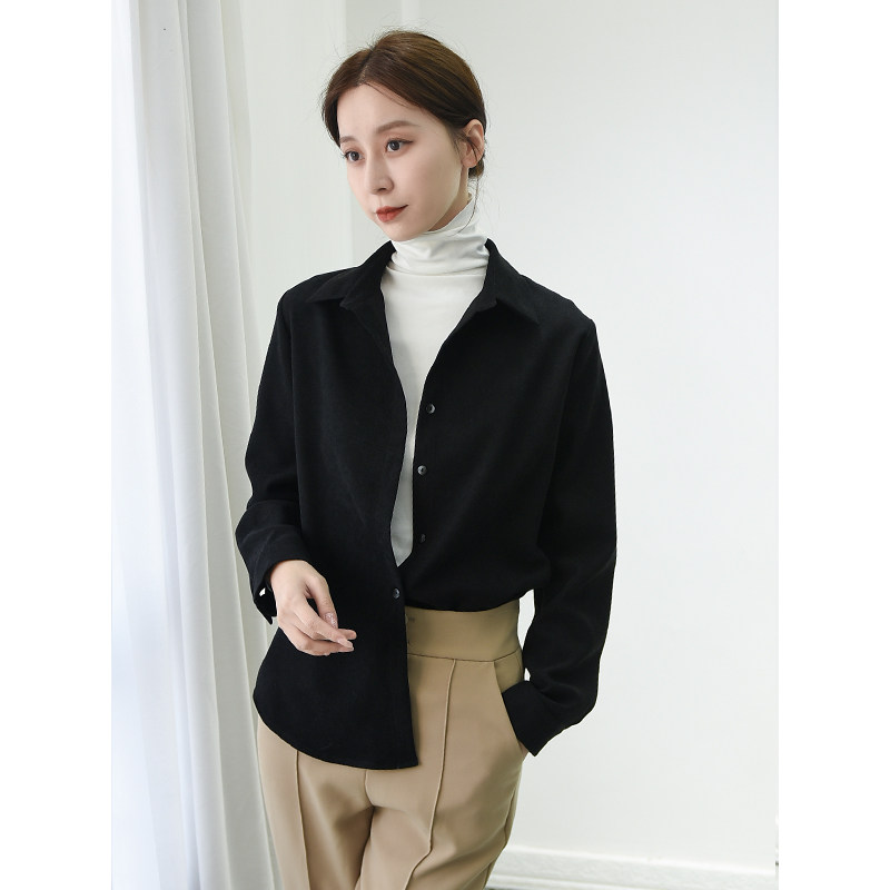 设计感打底衬衣 复古长袖 抗皱磨毛加厚灯芯绒衬衫 女秋冬2025年新款