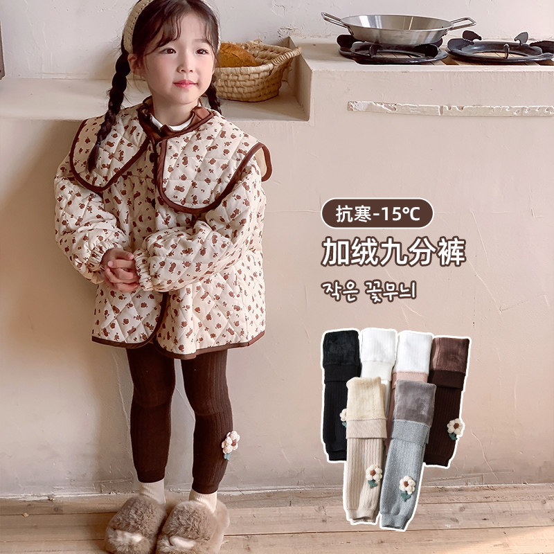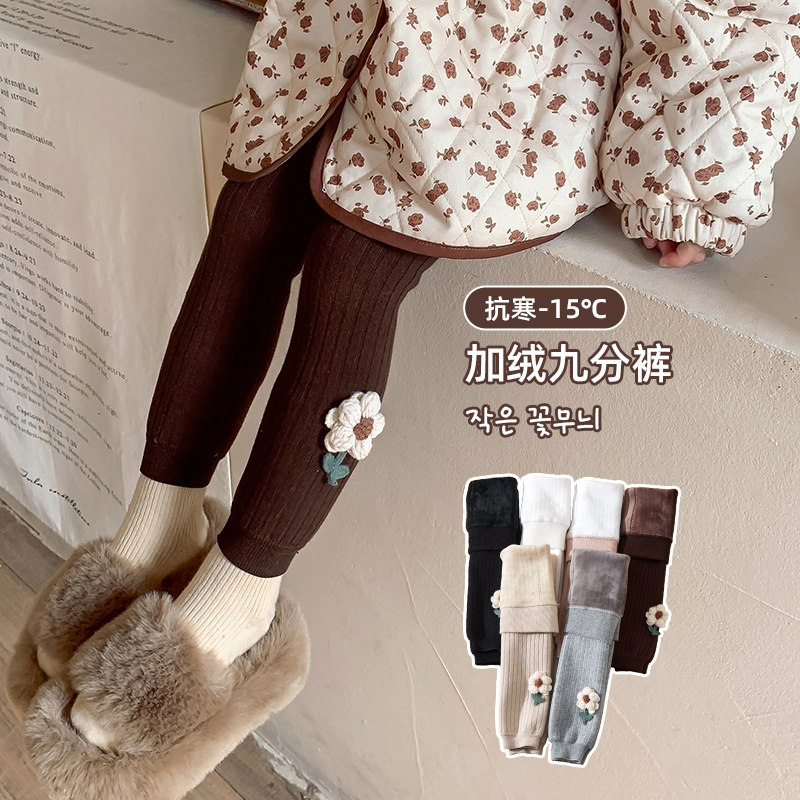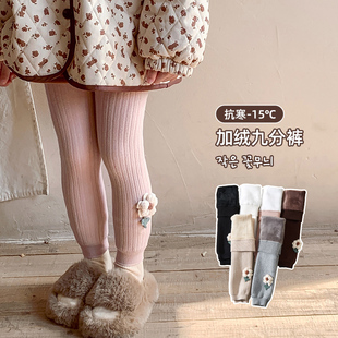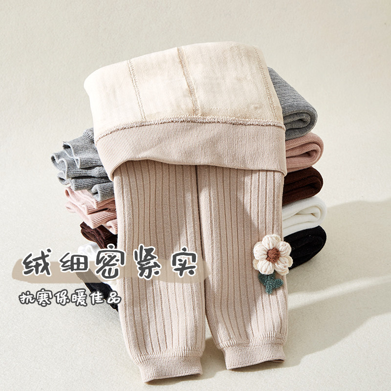 袜麻花宝宝保暖裤 加绒加厚九分一体绒儿童连裤 子 秋冬季 女童打底裤