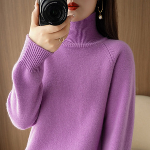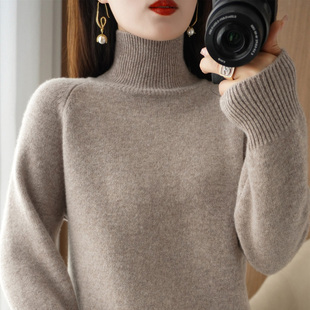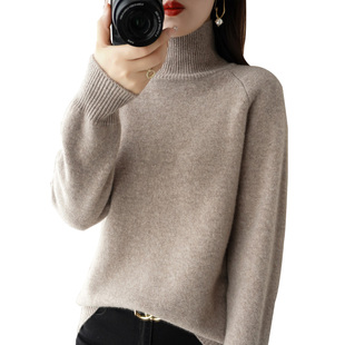 打底上衣 长袖 秋冬半高领针织衫 女宽松羊绒加厚套头内搭毛衣新款