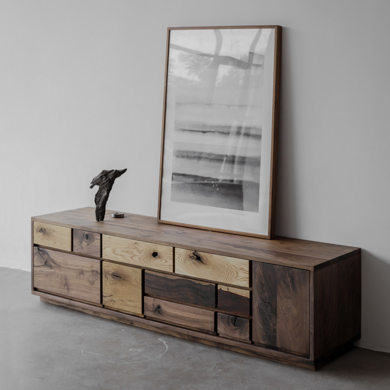 中古风电视柜复古收纳柜客厅靠墙落地置物装 饰柜胡桃木储物柜