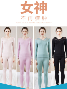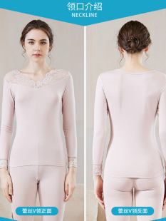 女秋衣秋裤 秋冬季 打底衫 线衣线裤 棉毛衫 莫代尔蕾丝领保暖内衣套装