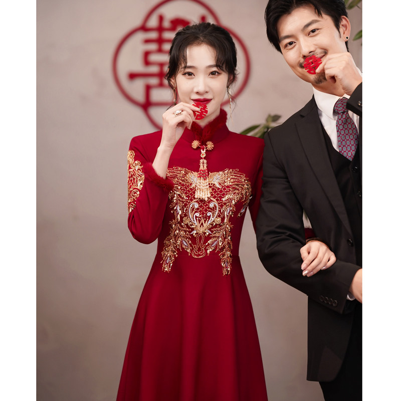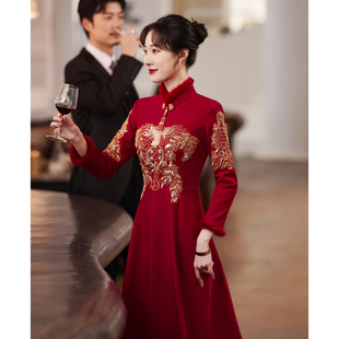 长袖 2025冬装 加绒加厚新年战袍拜年服 旗袍敬酒服回门装 红色新中式