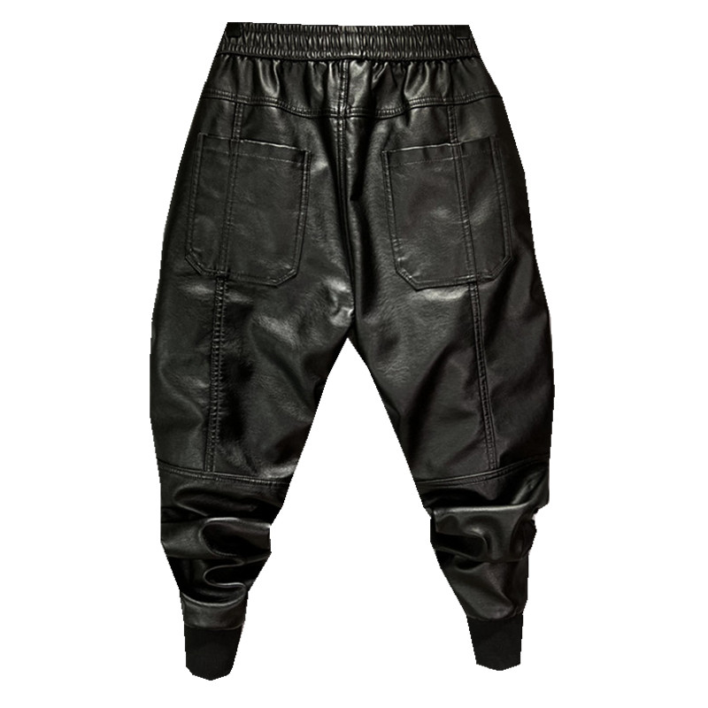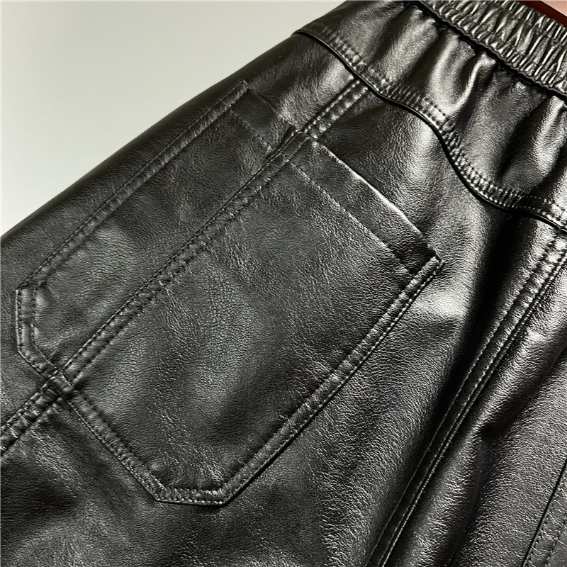 皮裤 六个兜仿皮PU束脚宽松长裤 加绒加厚男大码 机车裤 防风个性 冬季