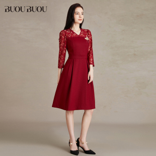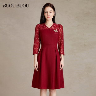 Buou女装 Buou 蝴蝶刺绣蕾丝轻场合收腰连衣裙DI1G056 关注领券