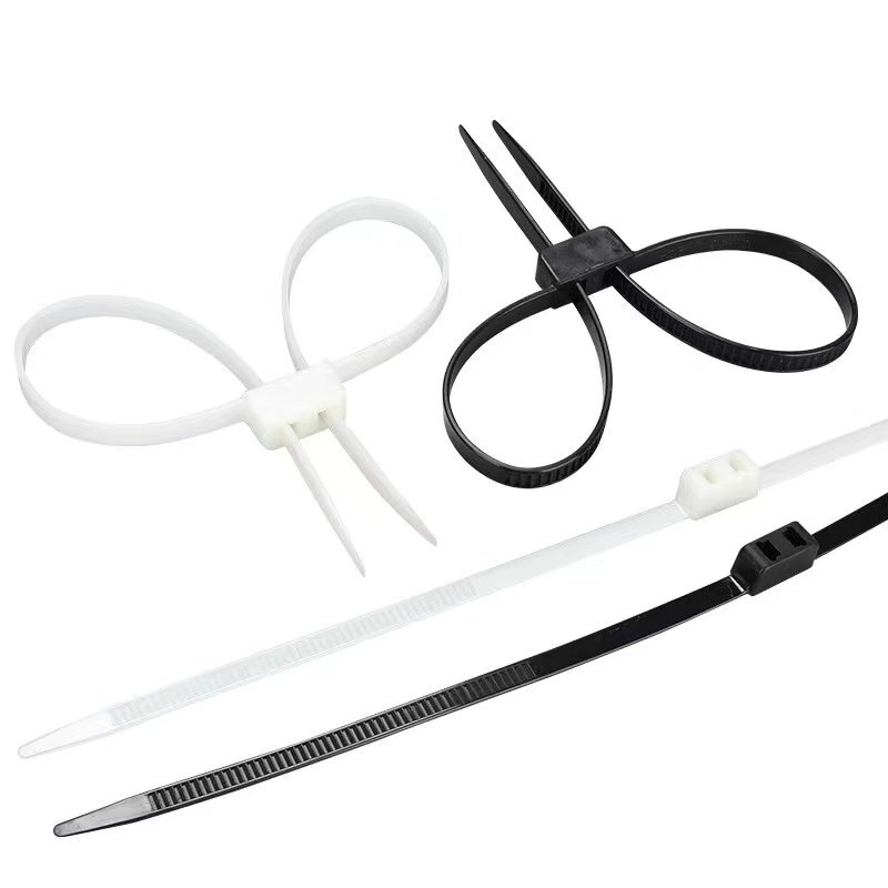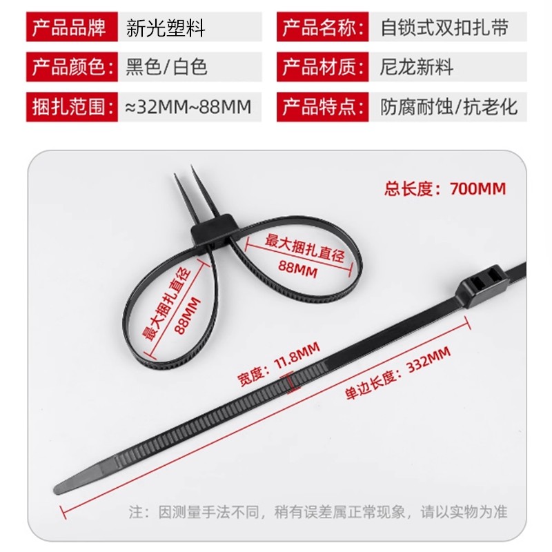 双扣尼龙绑带12X700双头锁脚束缚捆扎塑料卡扣束线扎带黑白色
