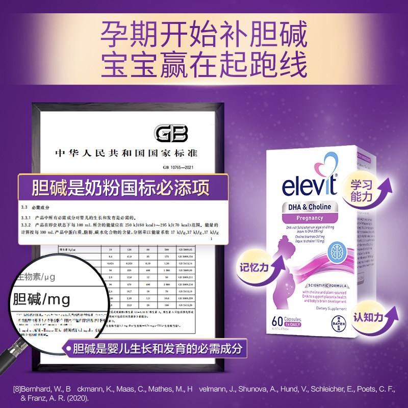盒 Elevit爱乐维胆碱DHA软胶囊孕妇孕期哺乳期营养60粒 自营