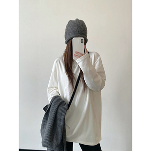 打底上衣 叠穿白T恤女春秋百搭休闲中长款 sun柚 简约纯色宽松长袖